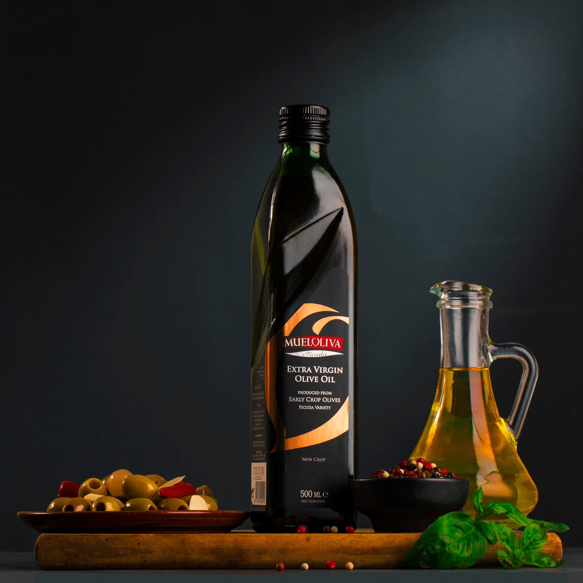 Experience the exceptional quality of Mueloliva's signature cold-pressed extra virgin olive oil - Picuda, made exclusively from the early-harvested Picudo olives that are cultivated on our very own farms in Priego de Córdoba in Andalusia, Spain.