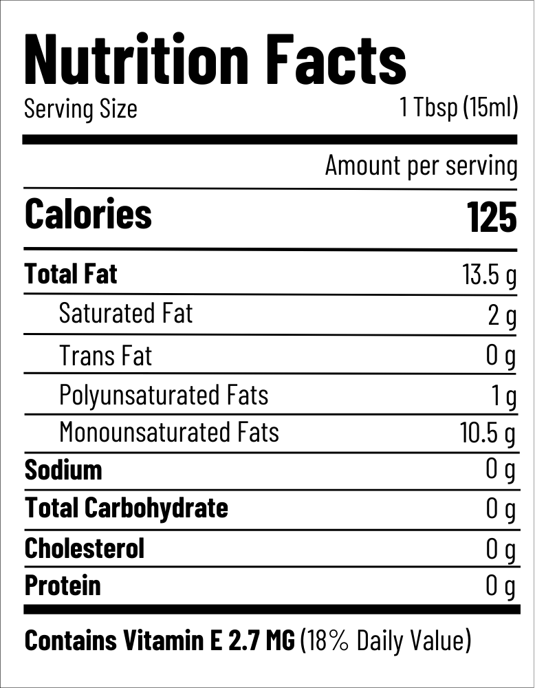- Heart-healthy fats – about 67% oleic acid (monounsaturated), the good kind linked to heart health. Zero trans fats.